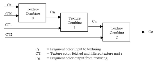 As you can see in the following figure, each texture unit is rendered the same way a single texture unit would be. You can also program a combiner. But if you don’t, the specified texture mapping (SoTexture SoTexture SoTexture :: model) will be used for each texture. In fact, MODULATE is actually a combiner which combines the incoming fragment with the texture’s fetched color, but SoTextureCombiner SoTextureCombiner SoTextureCombiner offers many more possibilities to make more complex combinations.